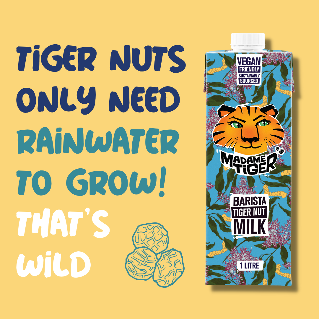 Madame Tiger Barista Tiger Nut Milk has the lowest climate footprint of oat, soy, almond and of course cow’s milk (by a country mile!) in Australia.